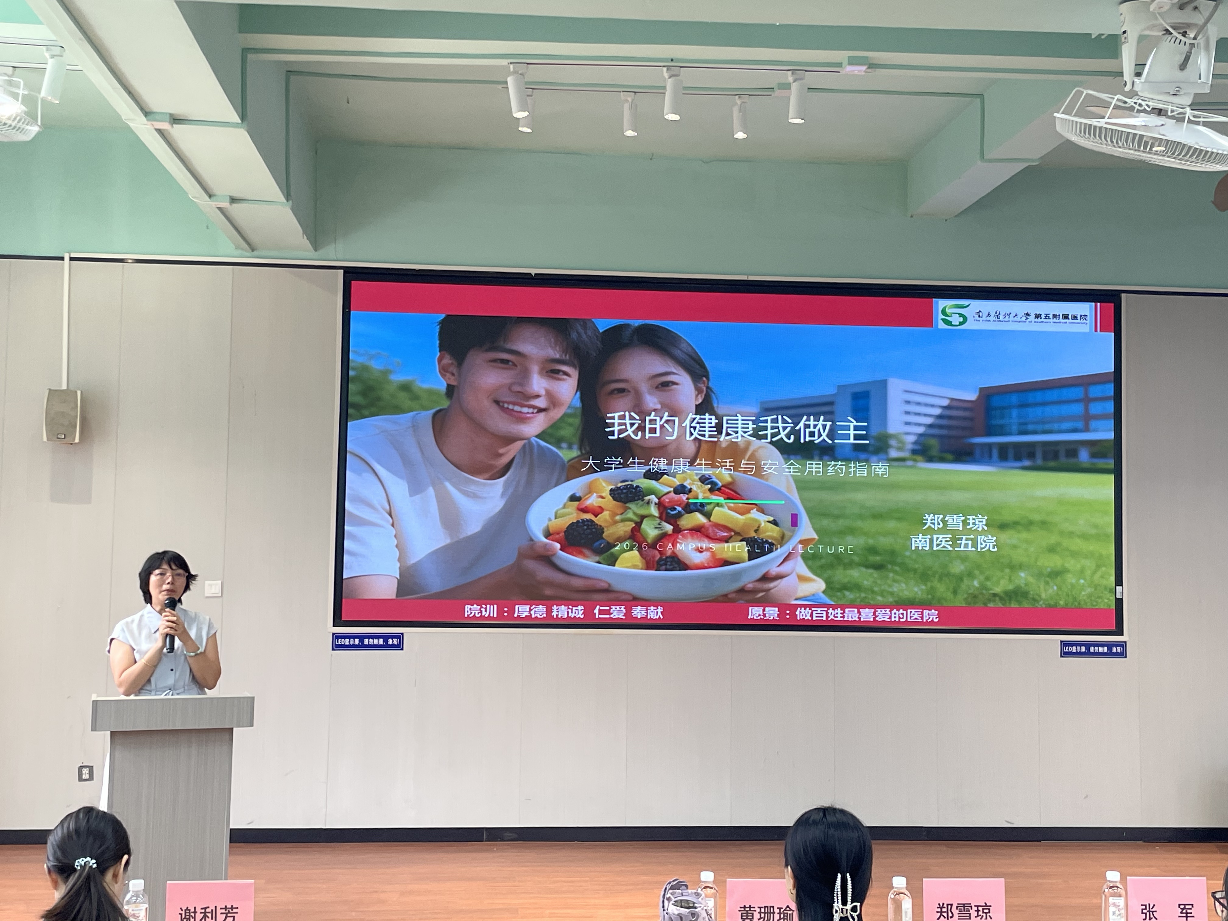 南方医科大学第五附属医院药学部副主任药师郑雪琼走进华夏校园用通俗易懂的语言,将专业药学知识与健康、饮食、运动、作息等日常内容相结合,逐一为大家拆解答疑。宣讲过程中,她立足讲台梳理健康知识脉络,又不时走近听众互动交流,把专业理论转化为贴近生活的实用建议,让大家清晰掌握健康养护与合理用药的要点。整场宣讲让科学用药、健康生活的理念深入人心,切实帮助大家扫清了用药与日常健康管理的知识盲区。