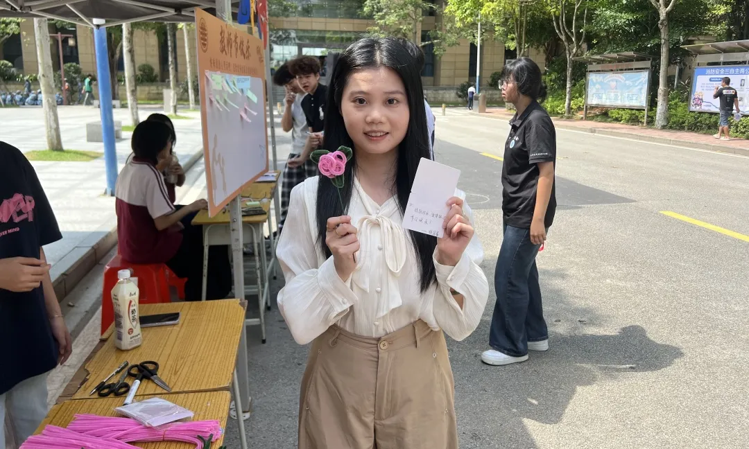 教师节之际,同学们在贺卡上写下对老师的深情祝福与诚挚礼赞,将感恩与感动融入字里行间,随后亲手赠予老师,传递专属温暖,让师生情谊在互动中愈发深厚。