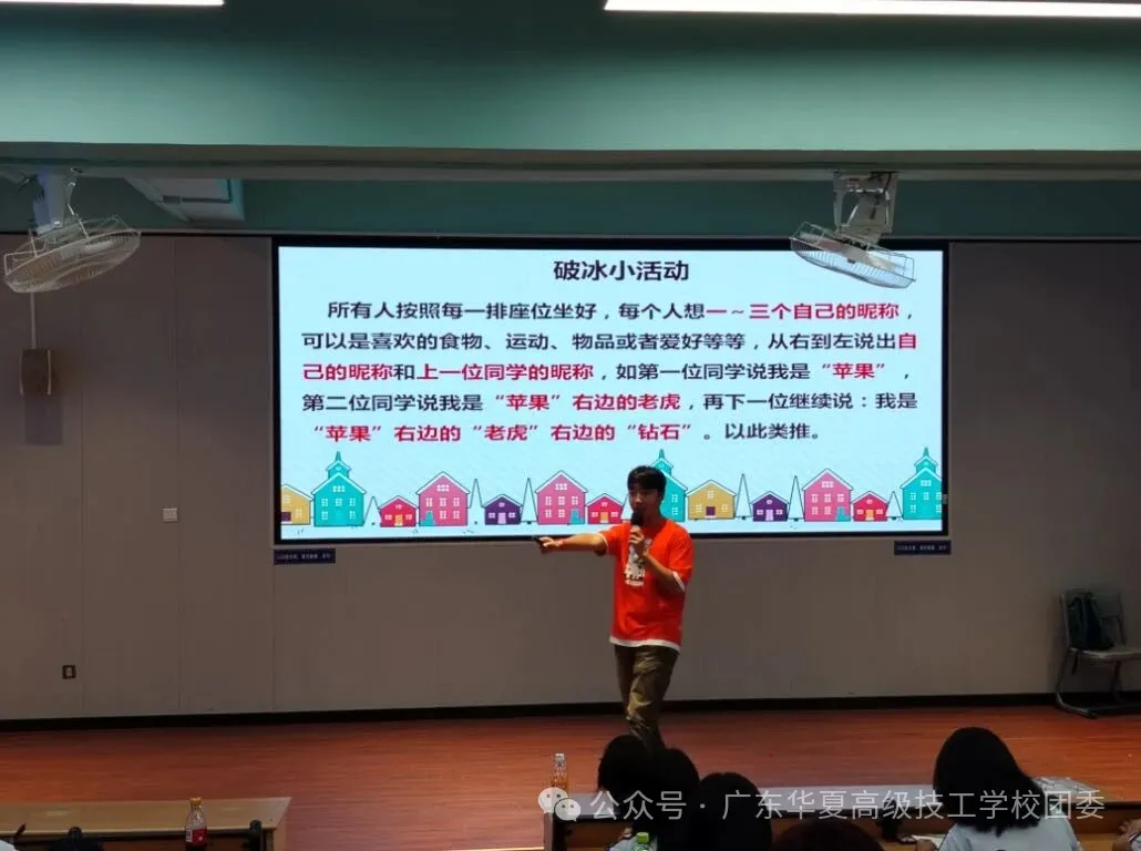 所有人按照每一排座位坐好,每个人想一~三个自己的昵称,可以是喜欢的食物、运动、物品或者爱好等等,从右到左说出自己的昵称和上一位同学的昵称,如第一位同学说我是“苹果”,第二位同学说我是“苹果”右边的老虎,再下一位继续说:我是“苹果”右边的“老虎”右边的“钻石”,以此类推。