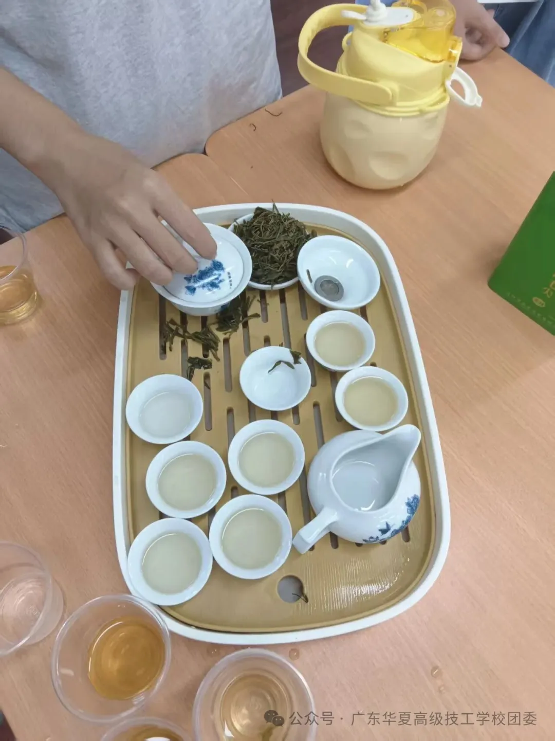 活动现场,我们为大家奉上了清香四溢的迎宾茶。同学们手捧温热的茶杯,在三五成群的自由交流中,分享着各自的兴趣爱好,讨论着对茶文化的理解。茶香袅袅,笑语盈盈,教室里的每一个角落都弥漫着融洽与温暖的氛围。活动的最后,社长向大家简要介绍了本学期茗溪茶社的活动规划。从专业的茶艺教学、名茶品鉴,到轻松的户外茶会,丰富多彩的活动预告引发了大家的无限期待,也为本次见面会画上了一个充满希望的省略号……