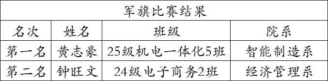 黑白对弈间,以沉稳破局;楚河汉界上,用智慧落子。每一次布局都暗藏巧思,每一次攻防都尽显章法,从开局的从容预判到中盘的精准博弈,再到收官的稳扎稳打,用精湛棋艺诠释了“落子无悔”的魄力,用专注态度展现了“棋道无形”的境界。恭喜获奖选手,愿选手在未来的棋局与人生中,始终保持这份清醒与果敢,步步生辉,再攀高峰!