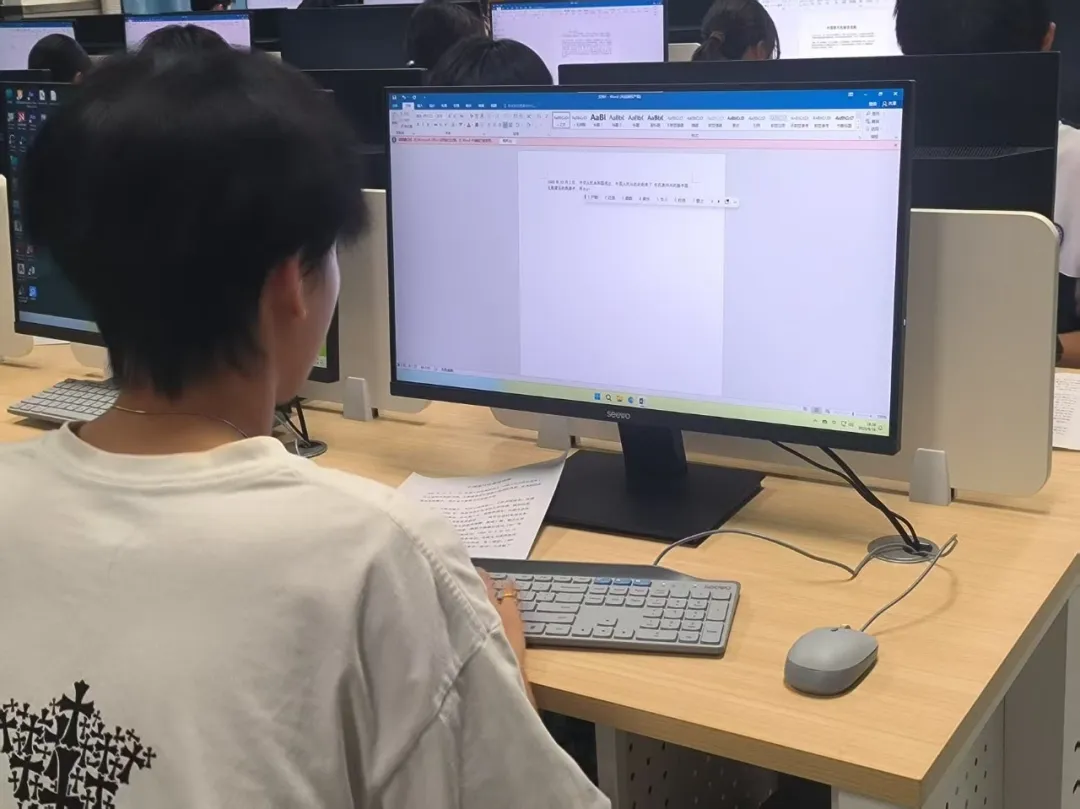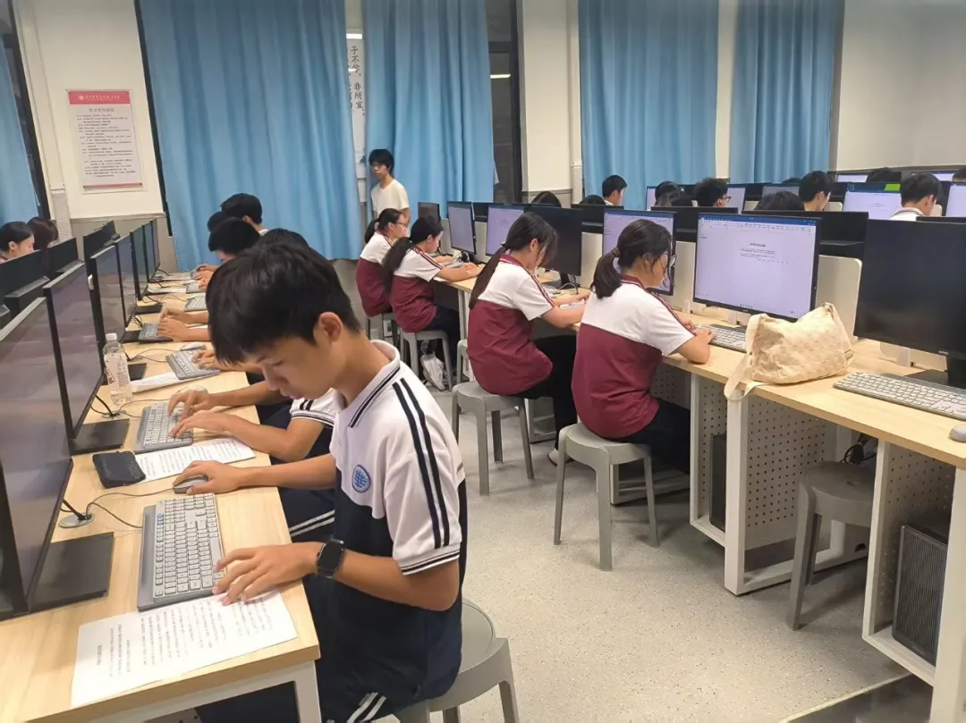 比赛过程中,现场氛围紧张又热烈。选手们双眼紧盯屏幕,手指在键盘上飞速跳跃,清脆的键盘敲击声此起彼伏,汇成一曲“指尖交响乐”。有的选手神情专注,动作行云流水,仿佛与键盘融为一体;有的选手虽稍显紧张,但仍稳扎稳打,努力发挥出最佳水平。