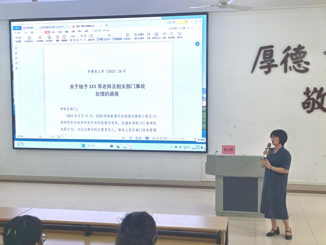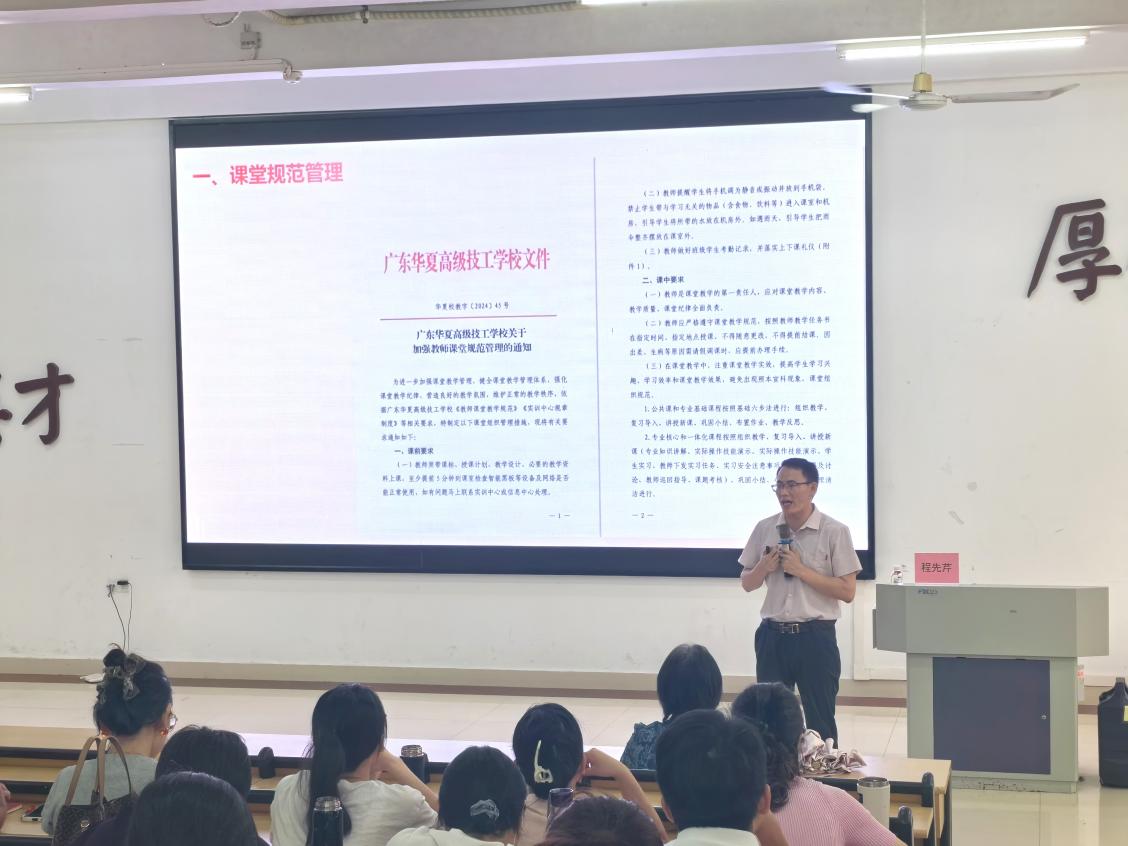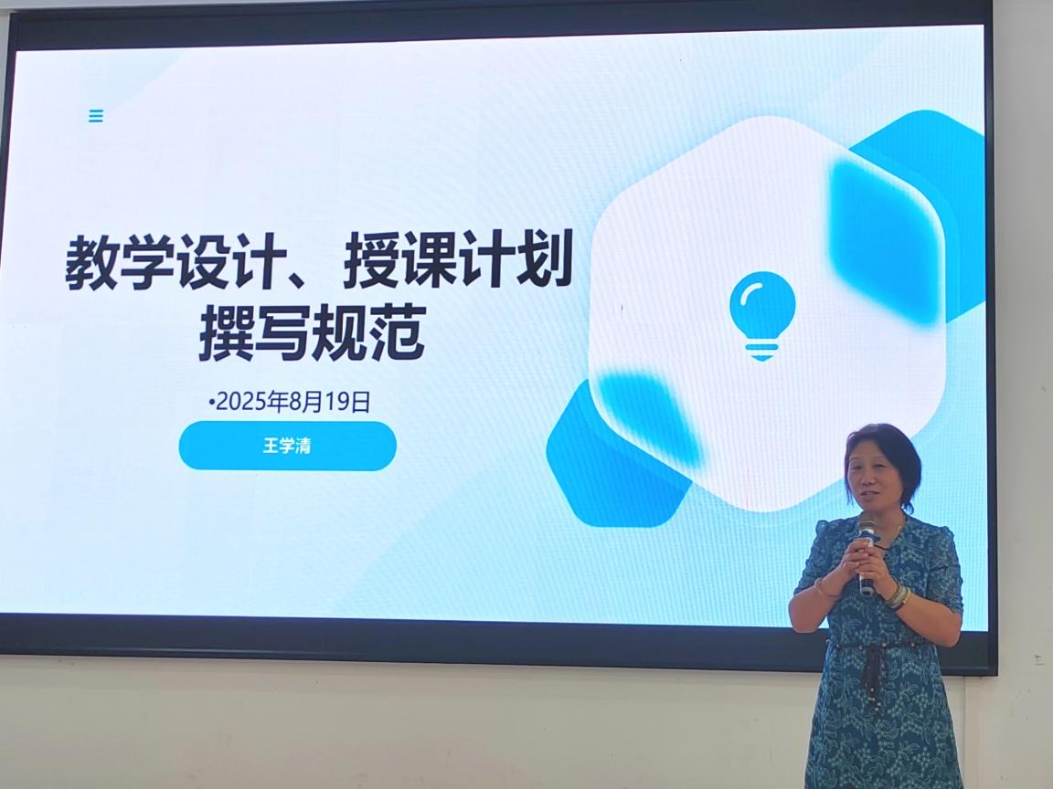 下午的培训聚焦教学实务规范。教务处副处长程先芹从教学计划执行、教学资料归档、课堂教学组织等方面,系统讲解 “教学日常管理规范”,让教师们对日常教学工作的标准流程有了全面把握;教务处处长王学清围绕 “教学设计的撰写要求”,结合优秀案例分析,从教学目标设定、教学过程设计、教学评价体系构建等维度,阐述了高质量教学设计的撰写要点;督导质管办督导杨玉英则针对 “教学质量评价及督导检查”,详细介绍了评价指标、检查流程及反馈机制。三场务实的讲解,使教师们对教学各环节的规范要求有了更深刻的理解。