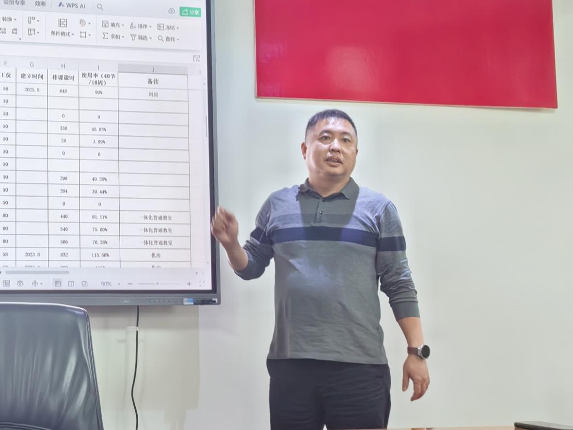 教务处林主任聚焦实训室管理工作,通报了各实训室的使用率情况。他指出,部分实训室存在使用不均衡、资源闲置等问题,希望各系部结合教学需求,优化实训课程安排,提高实训室资源利用效率。