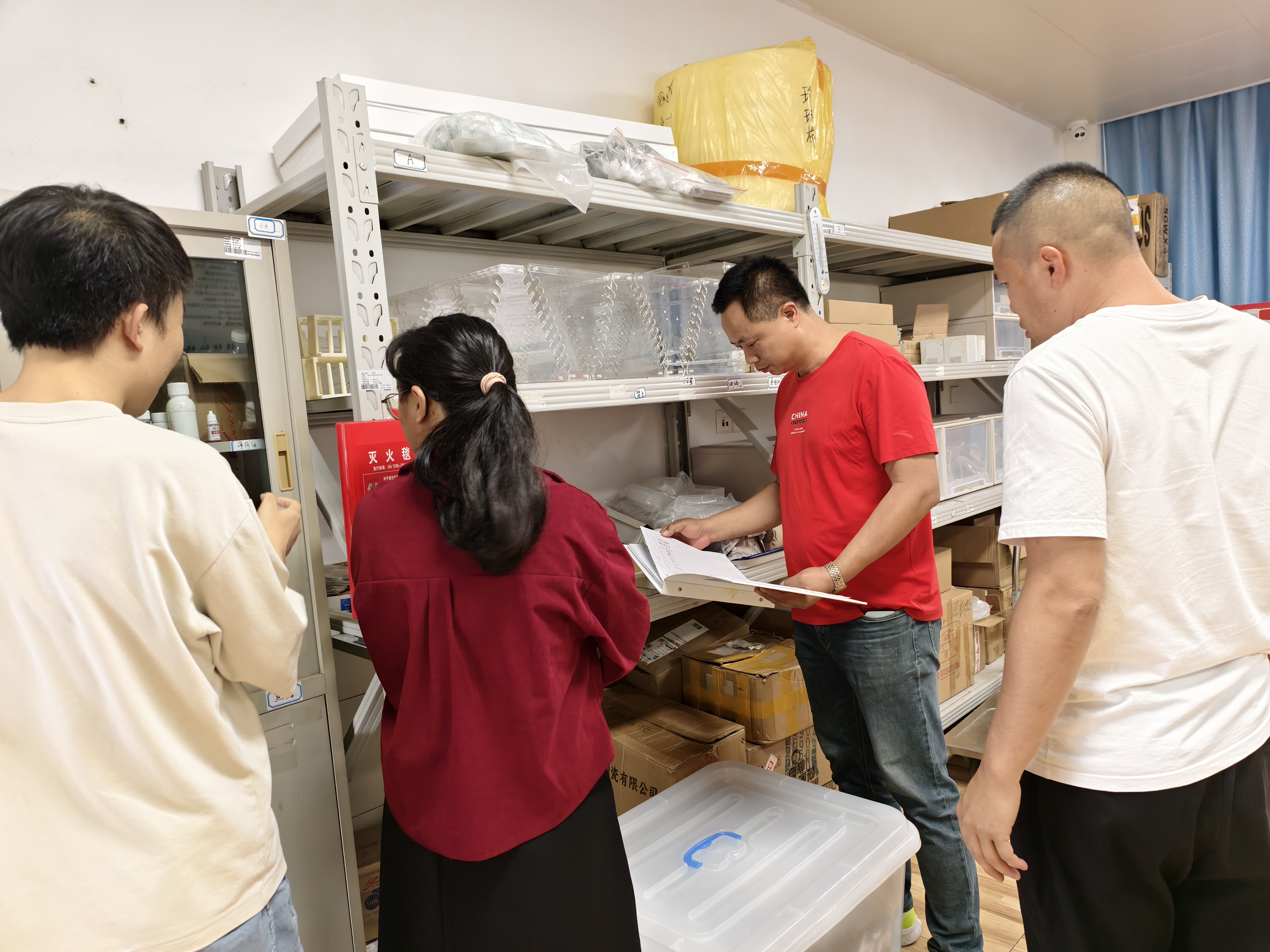 检查过程中,检查组一行仔细查看了各实训室的实训设备摆放情况,现场核实设备运行状态,确认各类设备均按规范整齐摆放,无违规堆放、乱摆乱放现象,设备维护保养到位,为实训教学安全开展提供了有力保障。针对危化品管理这一重点环节,检查组重点核查了危化品专柜存放情况,确认危化品均严格按照安全管理规定专柜放置、分类存放,标签清晰、管理规范,有效防范了危化品泄漏、混用等安全风险,切实守住了实训安全关键防线。