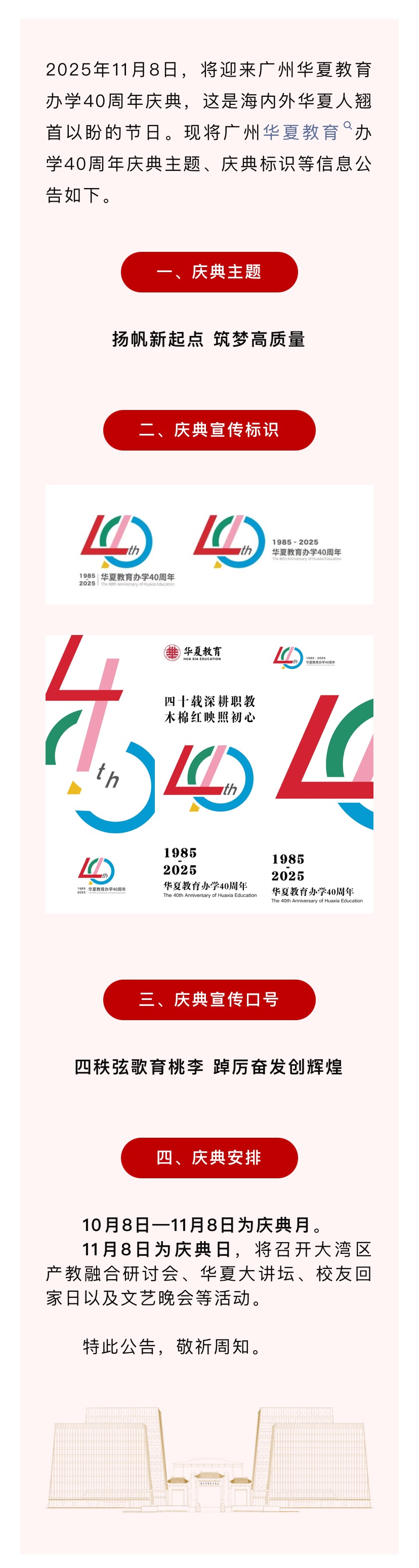 广州华夏教育办学四十周年庆典公告(第二号)