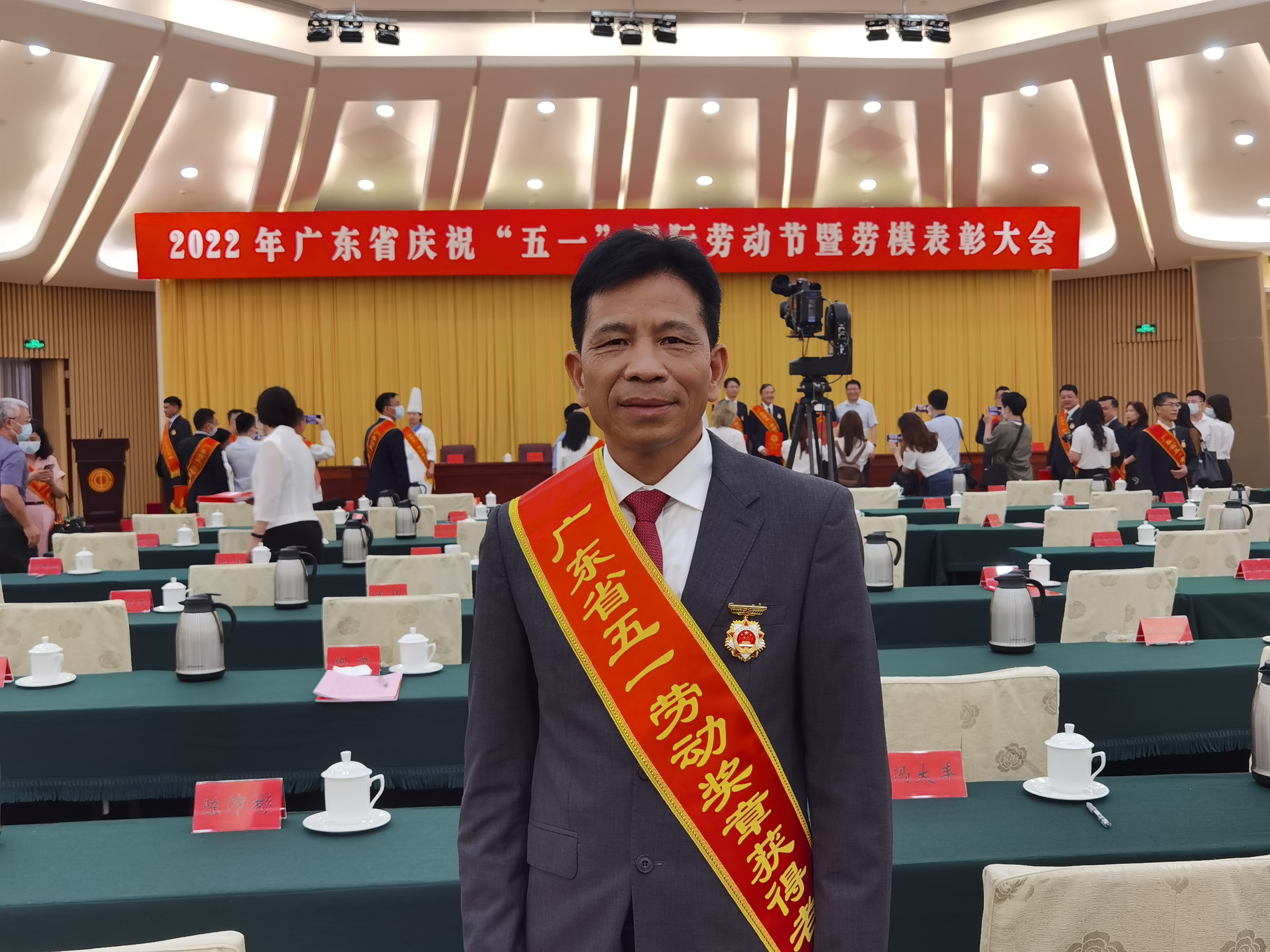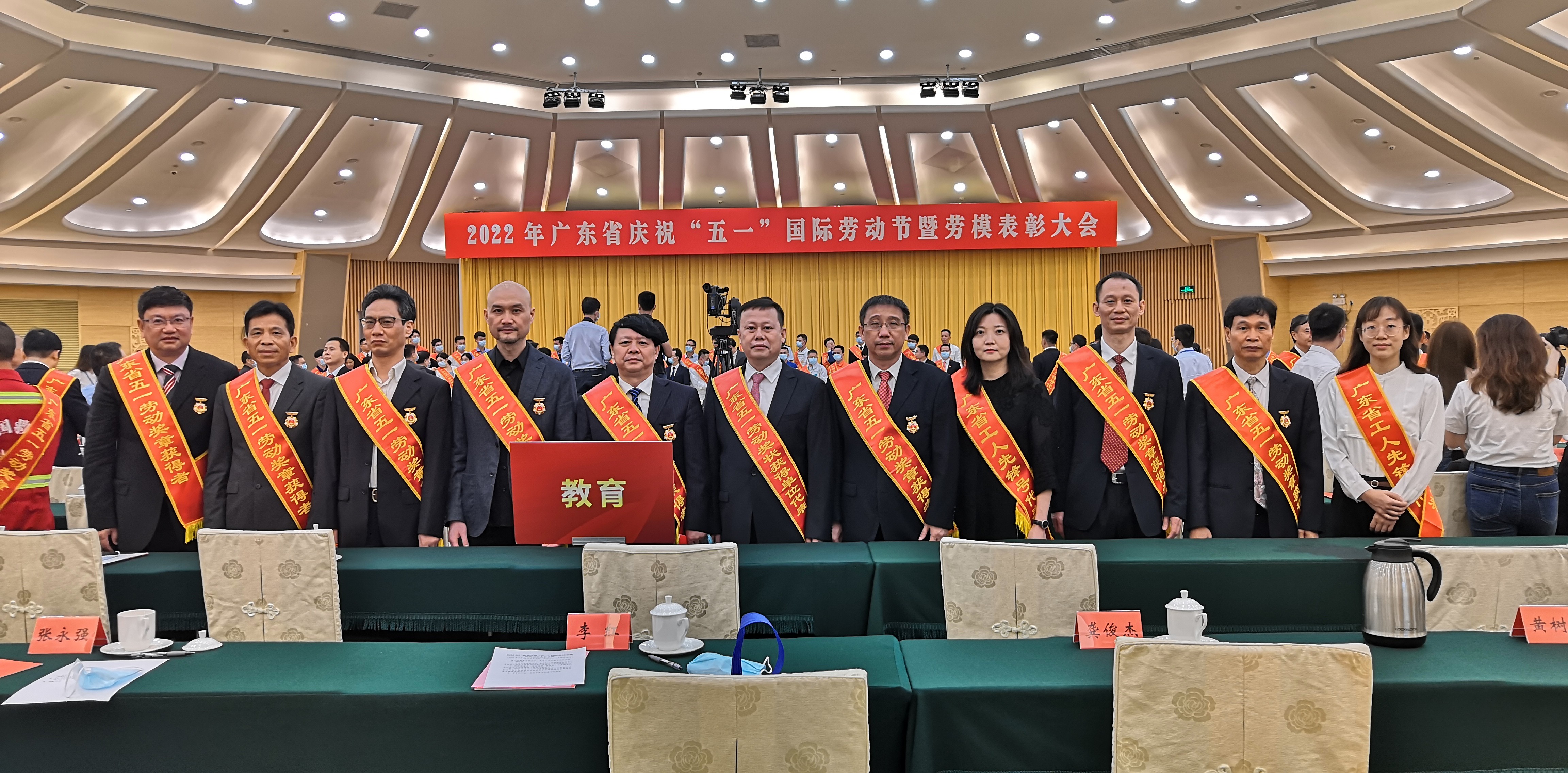 4月28日,2022年广东省庆祝“五一”国际劳动节暨劳模表彰大会在广州举行,广东华夏高级技工学校理事长兼校长欧阳少林荣获“广东省五一劳动奖章”,出席表彰大会并上台领奖。
