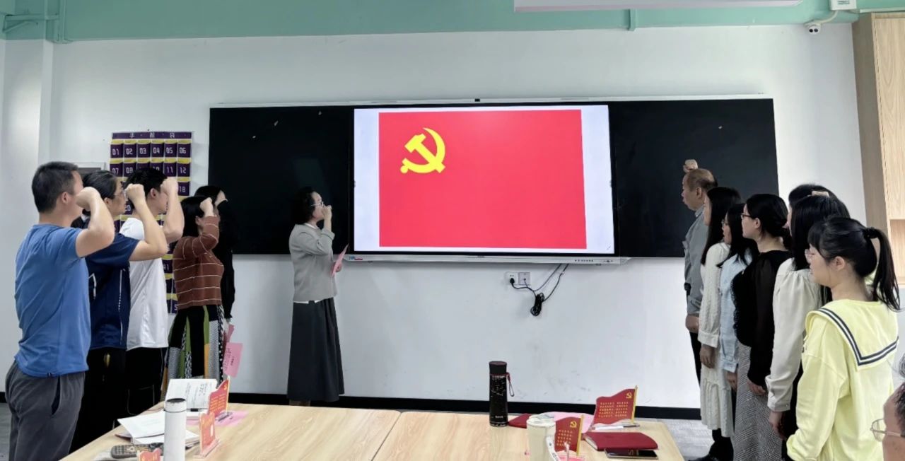 13名获得“党员先锋岗”荣誉称号的党员面向党旗,庄严举起右手,紧握拳头,集体宣誓,誓言铿锵、掷地有声,表达了对党忠诚与承诺。