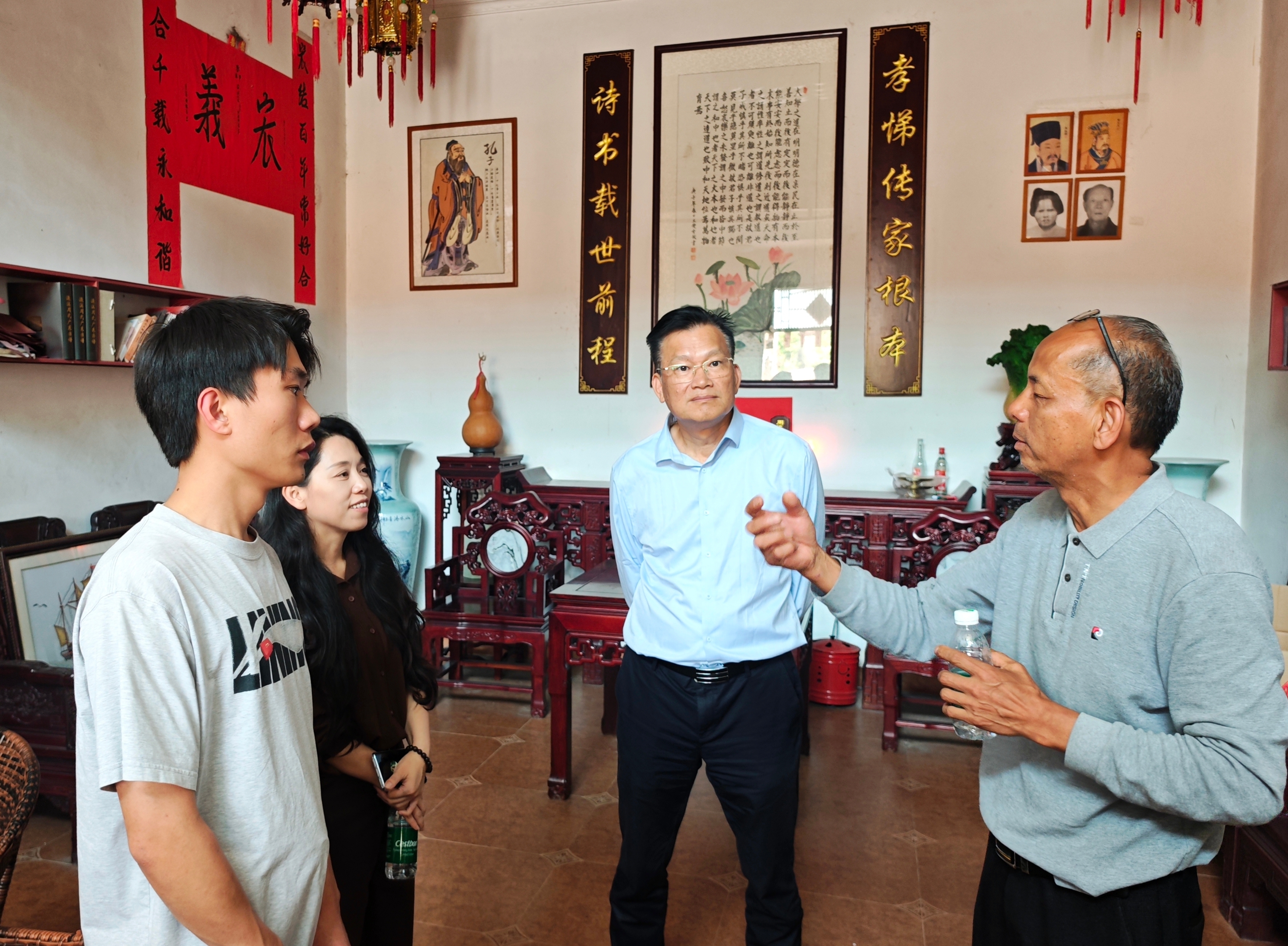 在从化濂溪书院创始人、周敦颐第三十代后人周钊文董事长的引领下,全体人员步入书院讲堂开启传统文化学习之旅。周董结合自身人生经历与创业历程,深情分享了自己接触优秀传统文化的渊源及创立濂溪书院的初心。他表示,创办书院既是为了纪念先祖先圣周敦颐,弘扬其家风家教家国情怀、以及其为人为官和廉政为民的的高尚品德,更是为了弘扬中华优秀传统文化,以文化人,滋养心灵、启迪人生,引导更多人能更好地服务社会,报效祖国,让传统文化发挥更大的育人与社会价值。