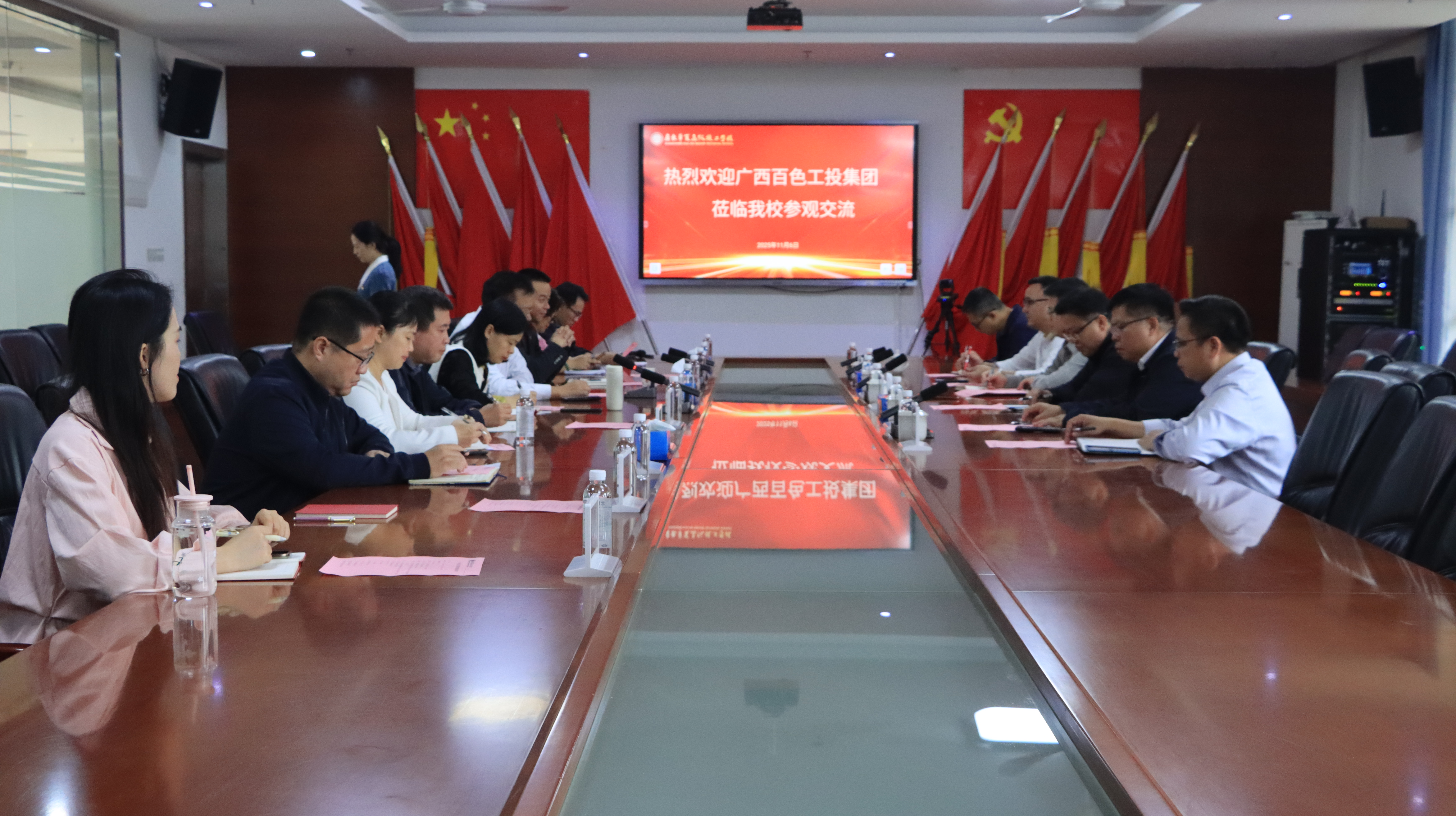 11月6日,广西百色工业投资发展集团有限公司党委书记、董事长麻华闪率集团及所属百色技工学校代表团一行来校参观交流。学校顾问冯为远、副校长张军、吴丹及相关部门负责人等参与交流。