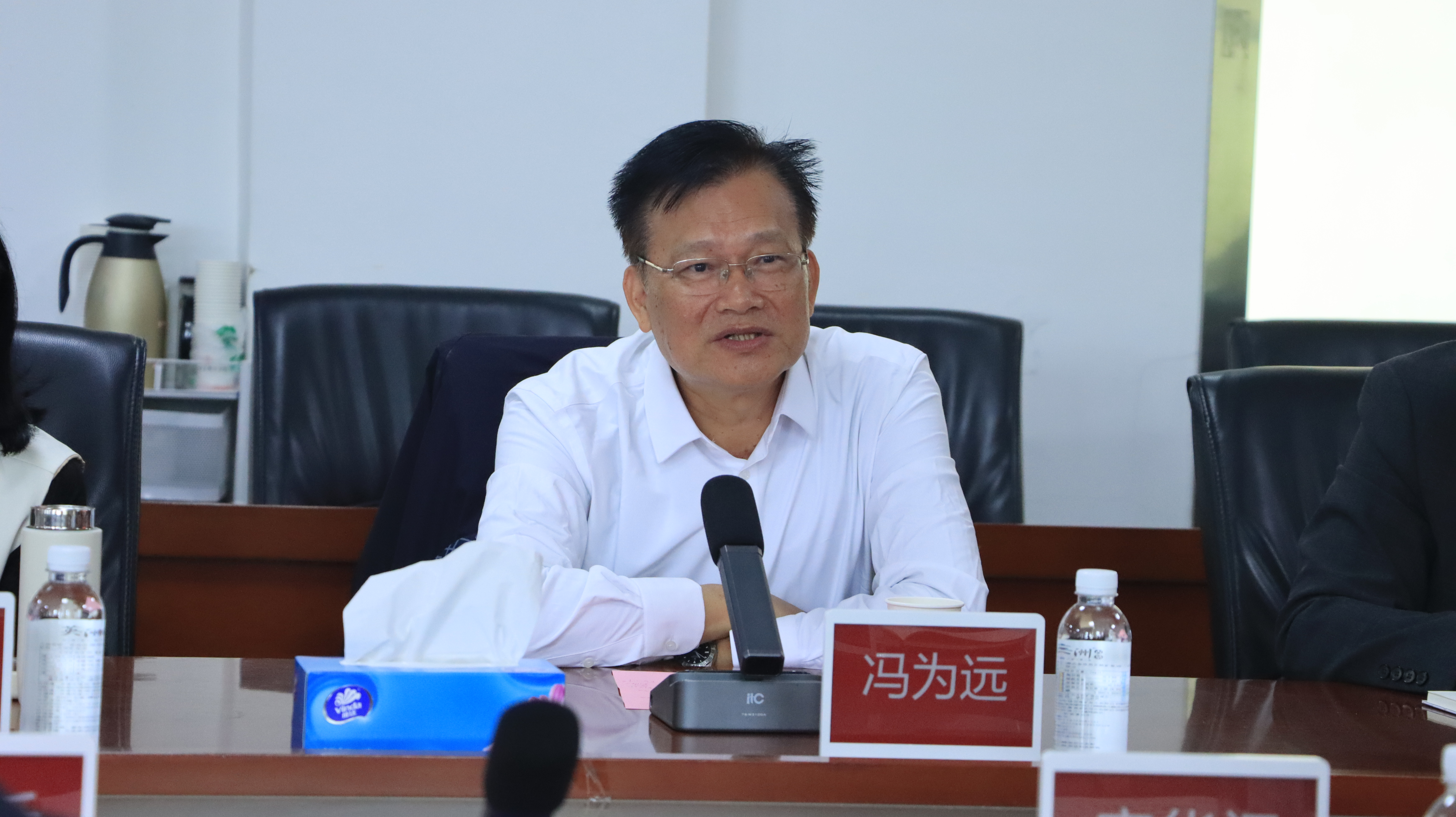 冯顾问首先代表学校对麻华闪董事长一行的到访表示热烈欢迎,并围绕学校的发展历程、办学理念、专业布局、人才培养成果及未来战略规划作了系统介绍,全面展示了我校在技工教育领域的探索与实践。